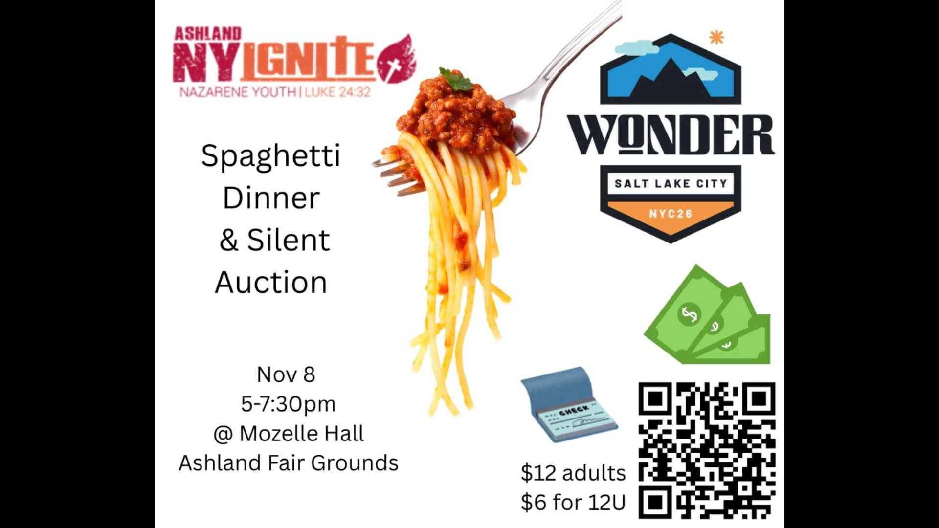 Ashland Church of the Nazarene has 6 teens traveling to Salt Lake City, UT to the National Youth Conference in the summer of 2026. This dinner and silent auction will help offset the costs of sending each teen on this trip. ($2,400/teen)