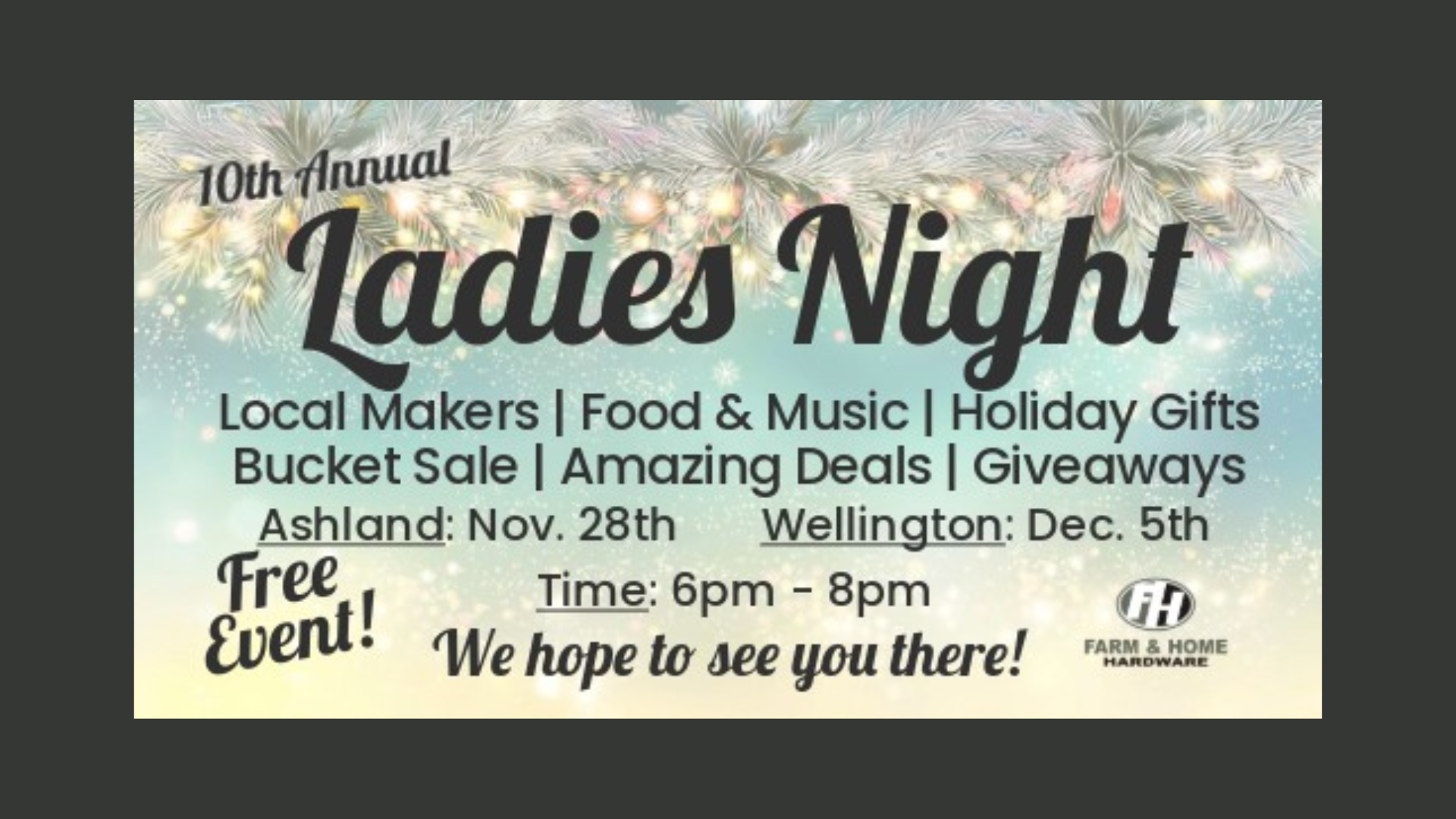 Nov 28 6:00 pm - 8:00 pm Ladies Night Farm & Home Hardware 140 Center St., Ashland Event Details Get Directions