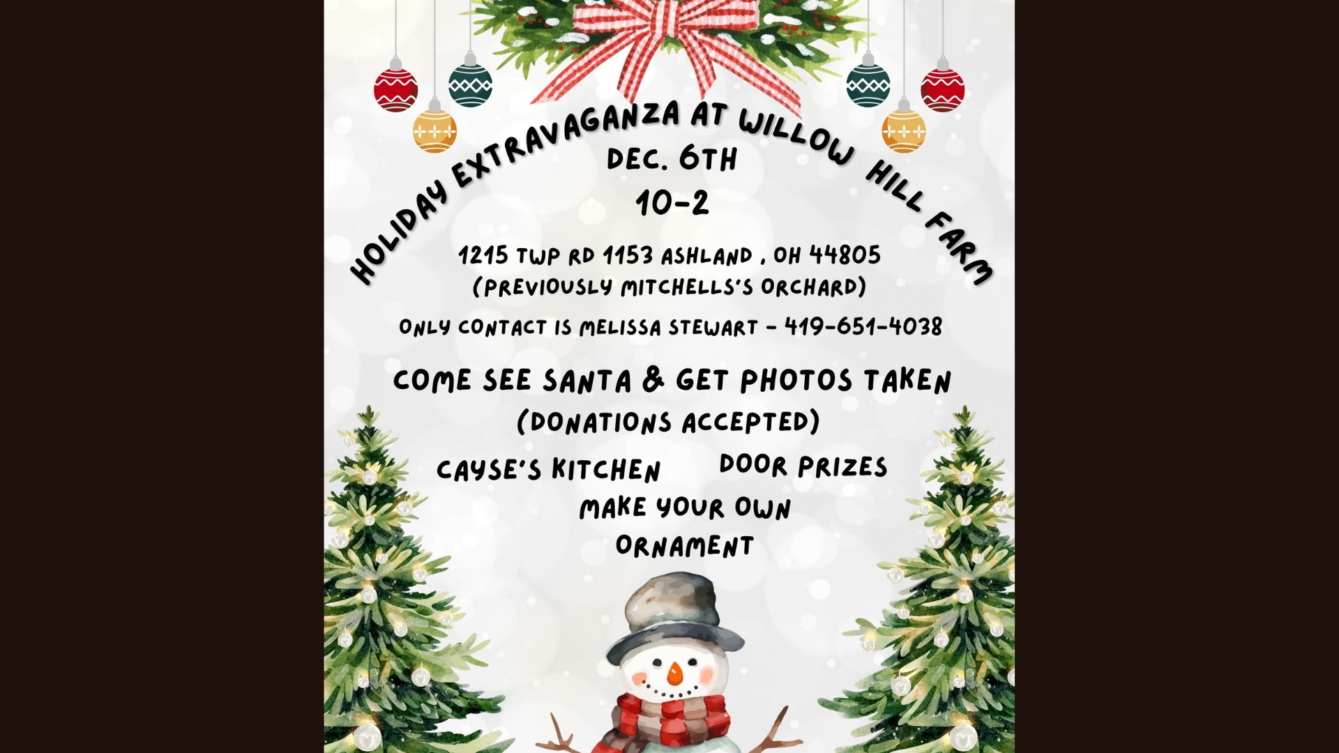 For the first time ever, the Ashland County Fairgrounds will be transformed into a drive-through Christmas light display—open Thursdays through Sundays, 6–9 PM, all December long (closed Christmas Day). This is a community built display! Cars - $10Transport Vans/Short Buses - […]