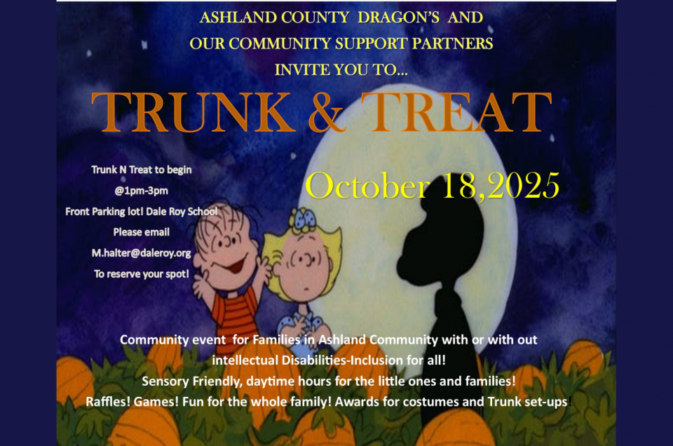 Community event for Families in Ashland Community with or without intellectual Disabilities-Inclusion for all! Sensory Friendly, daytime hours for the little ones and families! Raffles! Games! Fun for the whole family! Awards for costumes and Trunk setups. Event Page